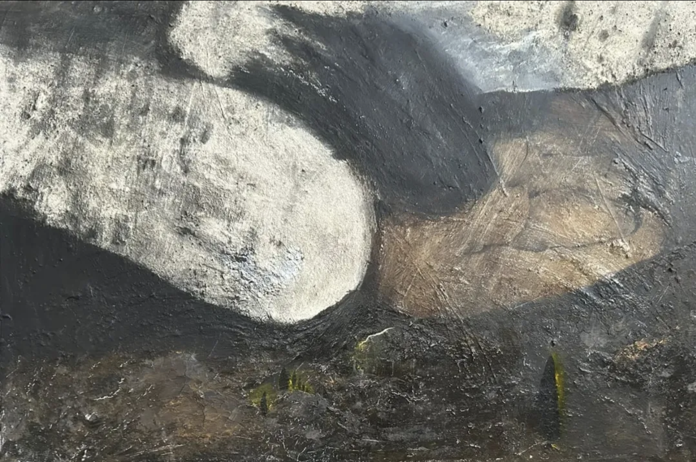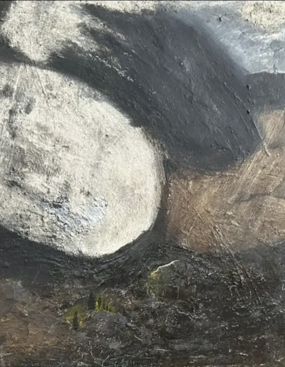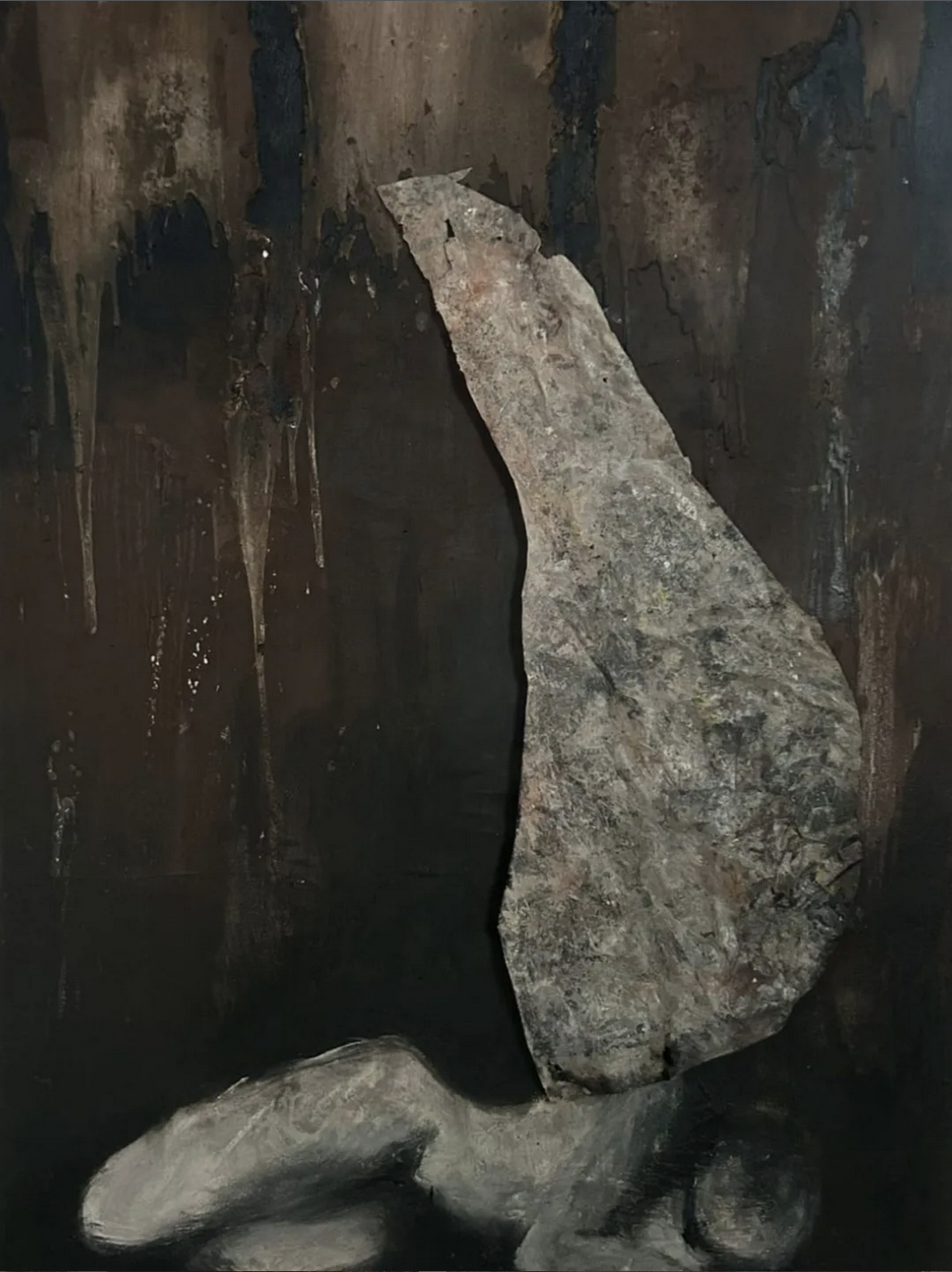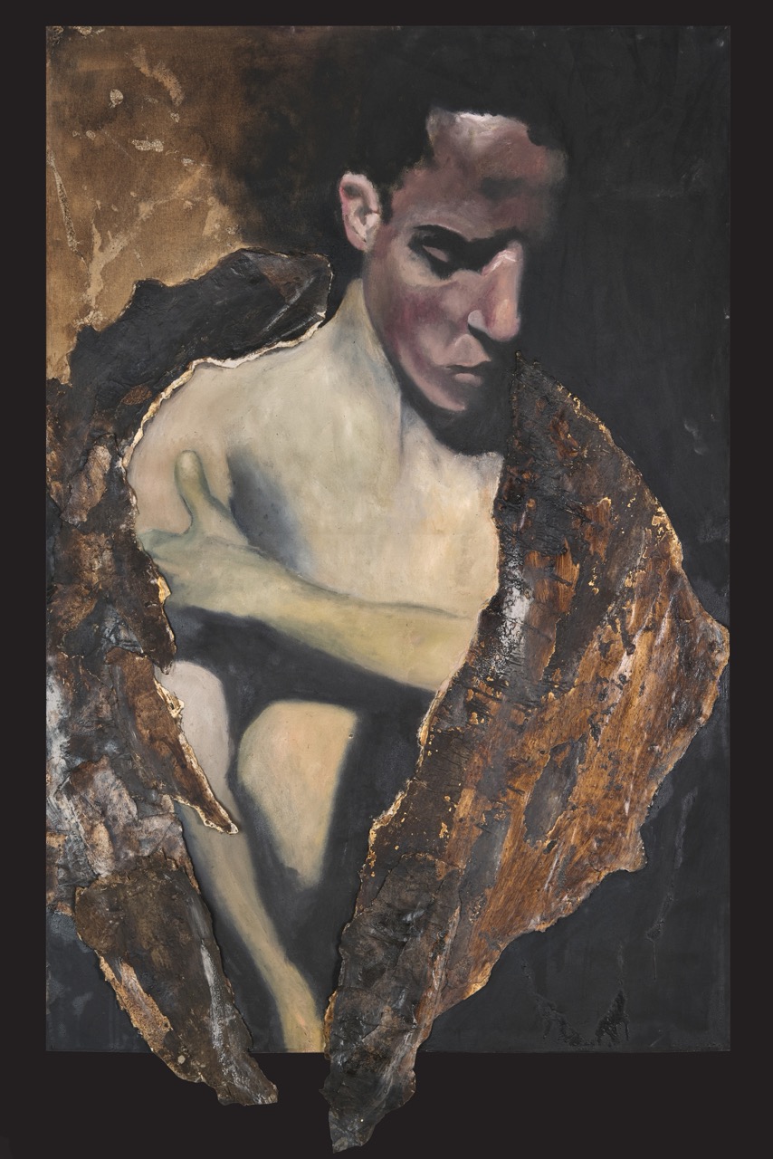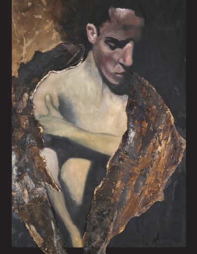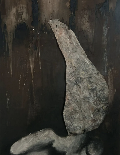 La pittura diventa così testimonianza di un processo: superfici dense, stratificate, percorse da segni visibili, in cui il gesto non illustra un’idea ma la incarna. Le tonalità terrose – ocra, bruni, terre d’ombra – accentuano la dimensione tellurica delle immagini, mentre la luce emerge dall’interno della materia pittorica. In questo modo, la caduta non è soltanto rappresentata, ma inscritta nella struttura stessa dell’opera.