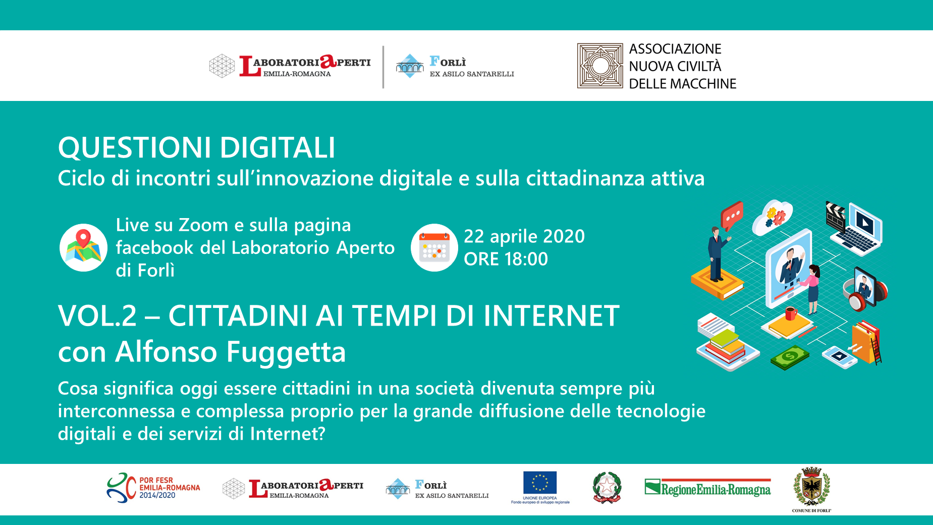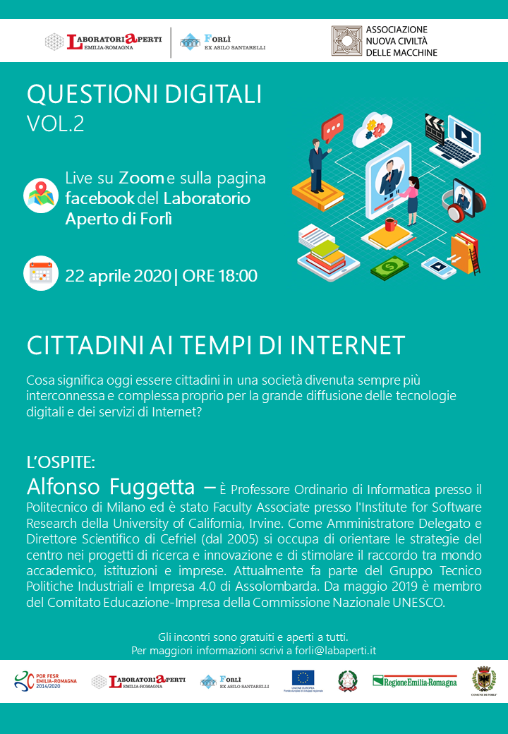 Il Laboratorio Aperto di Forlì e l’associazione Nuova Civiltà delle Macchine vi invitano al secondo appuntamento della rassegna di incontri “Questioni Digitali”.